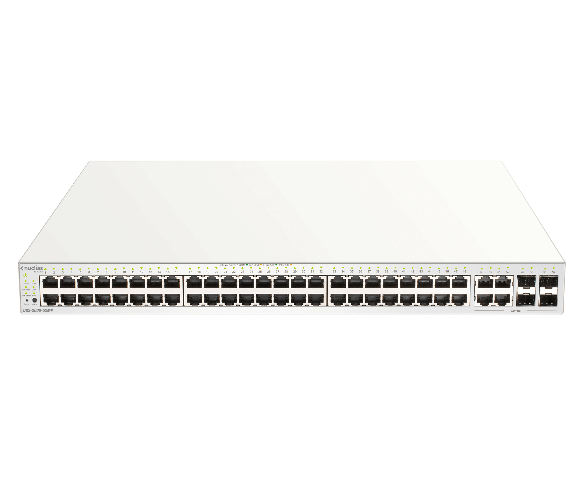 | Ports | 48 x 10/100/1000 (PoE+) + 4 x combo SFP |
