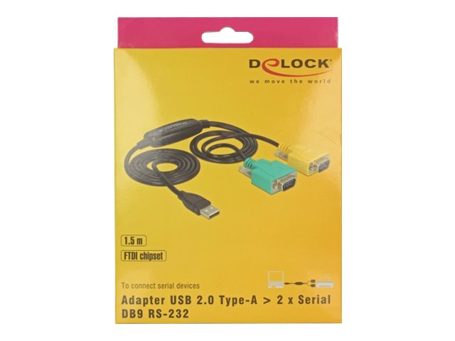 | Produktbeskrivelse | Delock Adapter USB 2.0 Type-A > 2 x Serial DB9 RS-232 - USB / serielkabel - USB til DB-9 - 1.5 m |