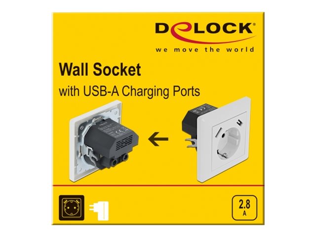 | Produktbeskrivelse | Delock - strømsokkel-outlet - 1 gang - 1 strømsokkel, 2 USB-sokler - hvid |
