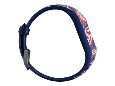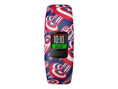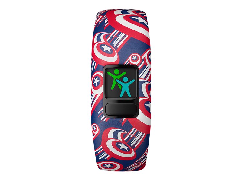 Alle børn kan blive en helt med Captain America vívofit jr. 2 på håndleddet. Denne svømmeegnede aktivitetstracker er hårdfør nok til at klare legepladsen, og med over 1 års batterilevetid skal man ikke stoppe legen for at lade op. Forældrene tildeler opgaver og belønninger fra den forældrestyrede mobilapp, mens børnene oplever app-eventyr, som lader dem klare ærterne sammen med Captain America og The Avengers.