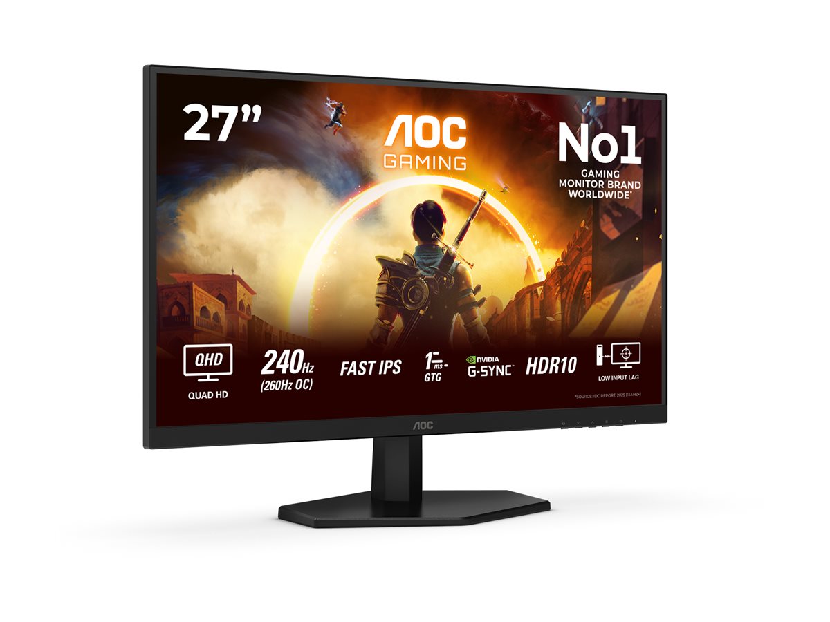 AOC Gaming Q27G42ZE - LED-skærm - gaming - 27" - 2560 x 1440 QHD @ 240 Hz - Fast IPS - 300 cd/m² - HDR10 - 0.3 ms - HDMI, DisplayPort