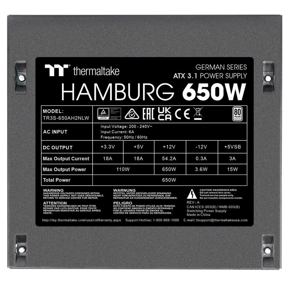 Thermaltake Hamburg 650W - Strømforsyning (intern) - 80 PLUS - ATX 3.1 - AC 100-240 V - 650 Watt