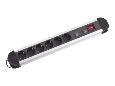 M-CAB Stikdåse 6-stik 16A Sort Sølv 2m