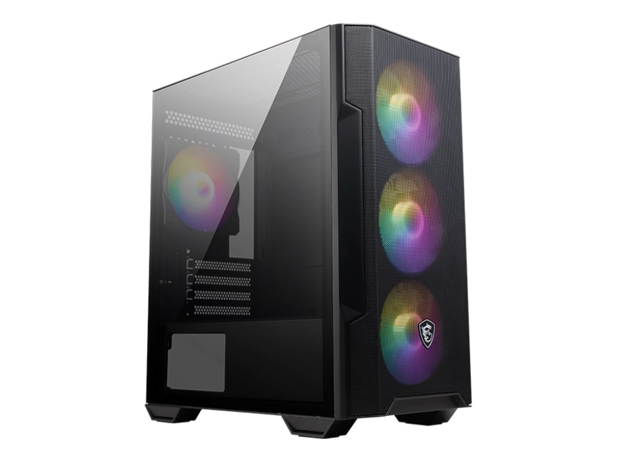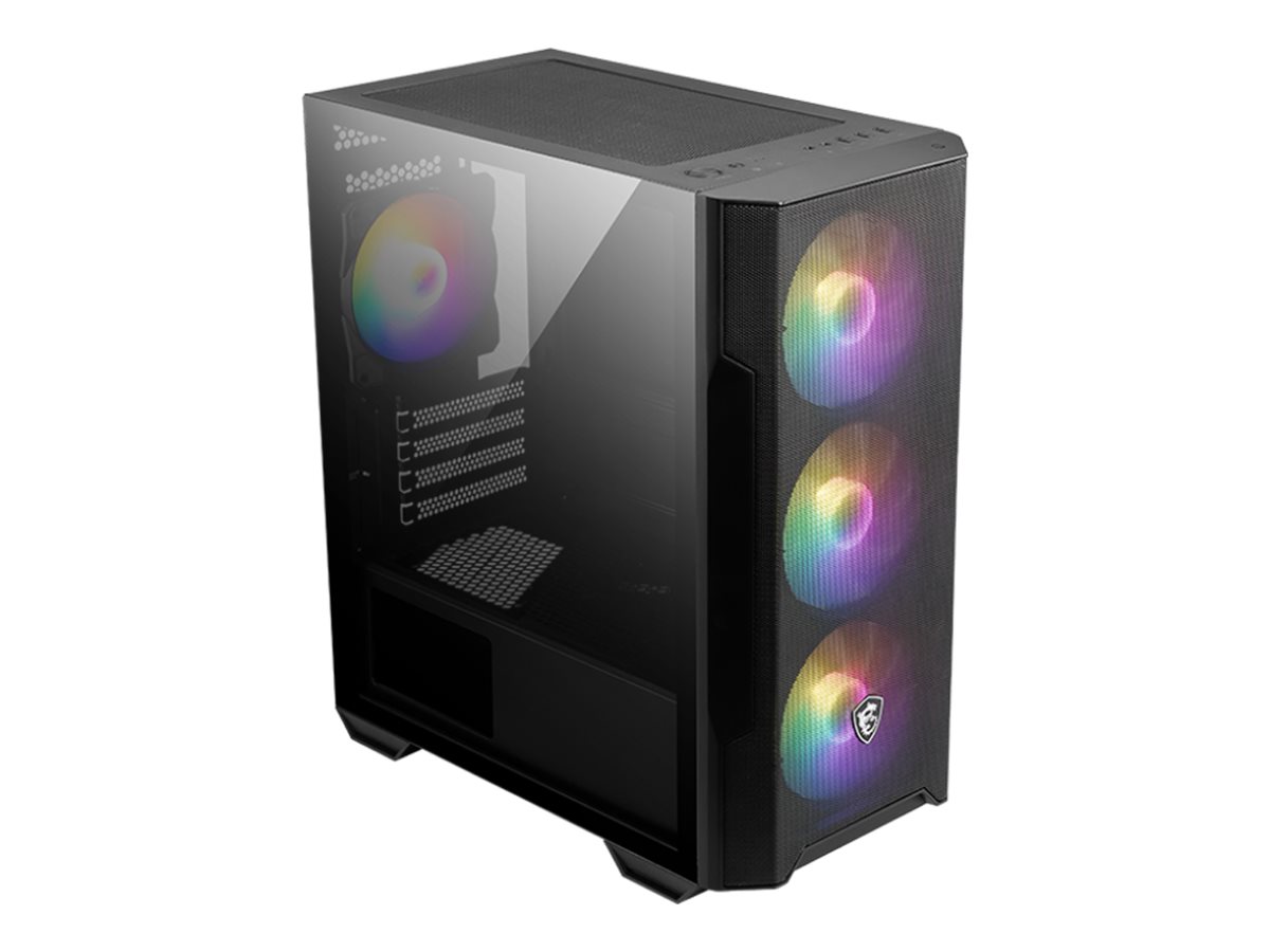 | Egenskaber, systemkabinet | Understøtter 240 mm radiator i frontpanel, understøtter 240 mm radiator i toppen, understøtter 120 mm radiator bagtil, ARGB-blæsere, magnetisk støvfilter, LED-kontrolknap, MSI RGB Mystic Light Sync |