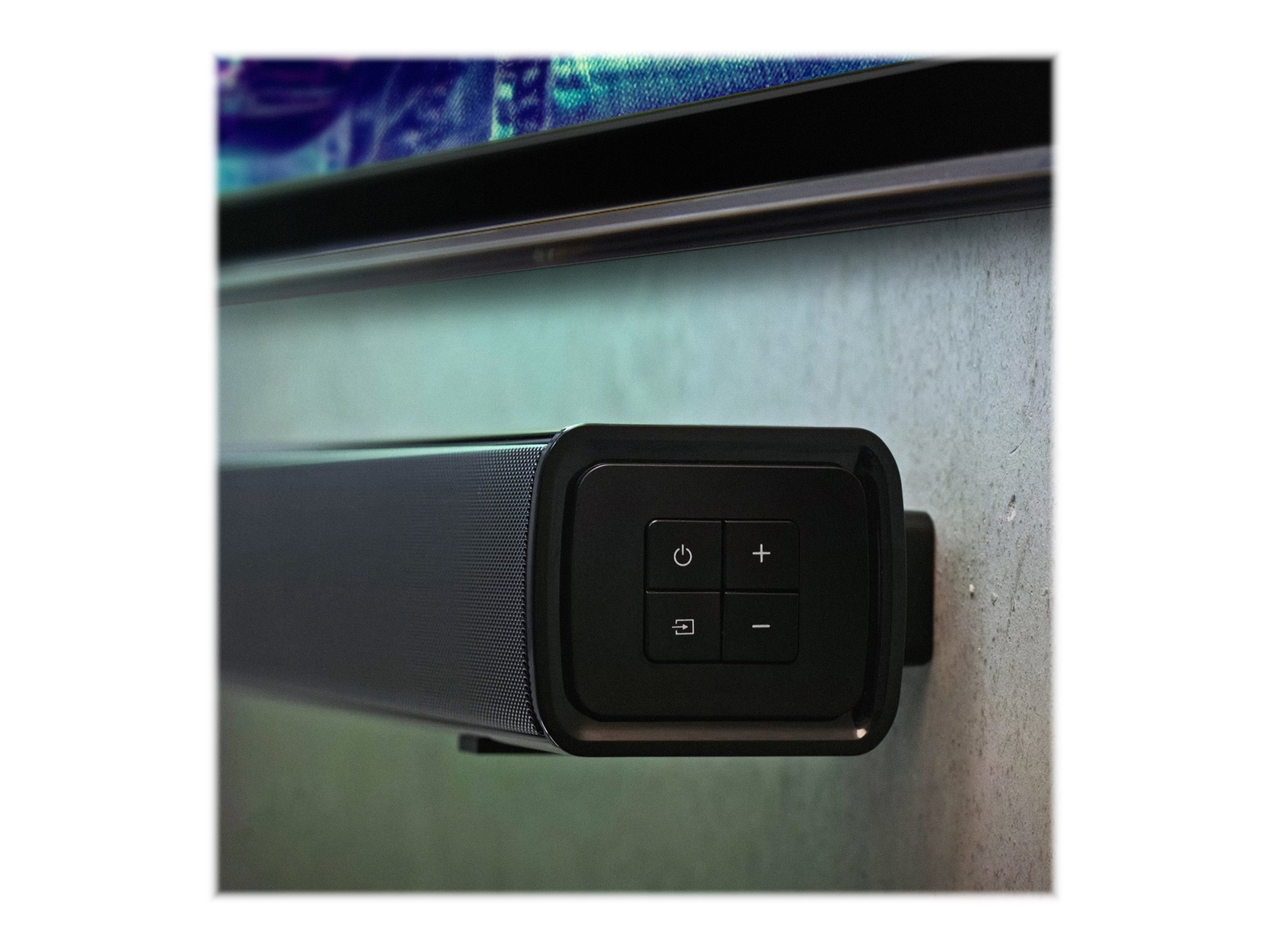 HTB100 er nem at montere på væggen under dit tv takket være de integrerede monteringsåbninger. Sæt bare de medfølgende skruer i væggen, hæng den på plads, og tilslut med et HDMI-kabel. Perfekt til rum, hvor rene overflader er vigtige.