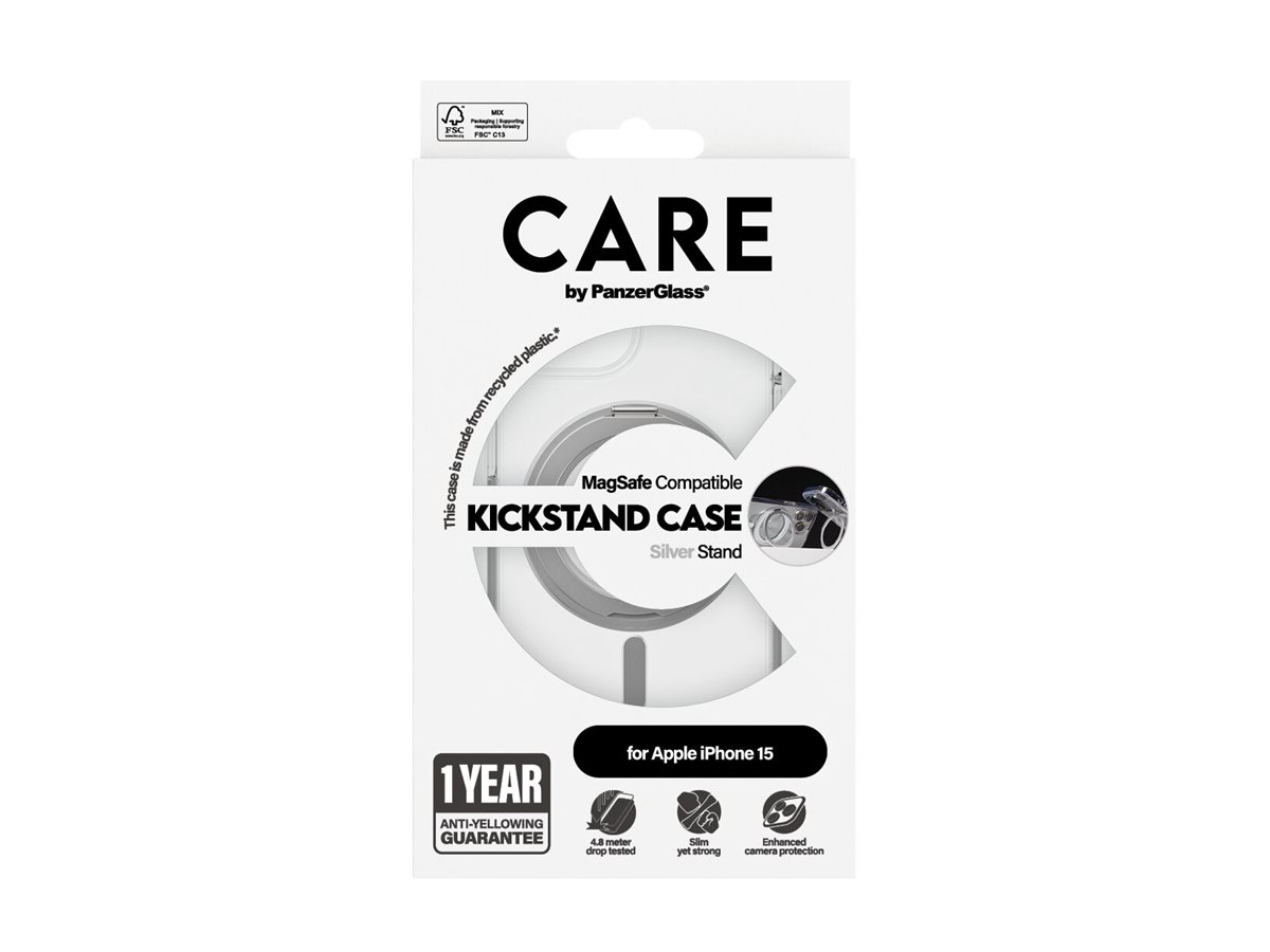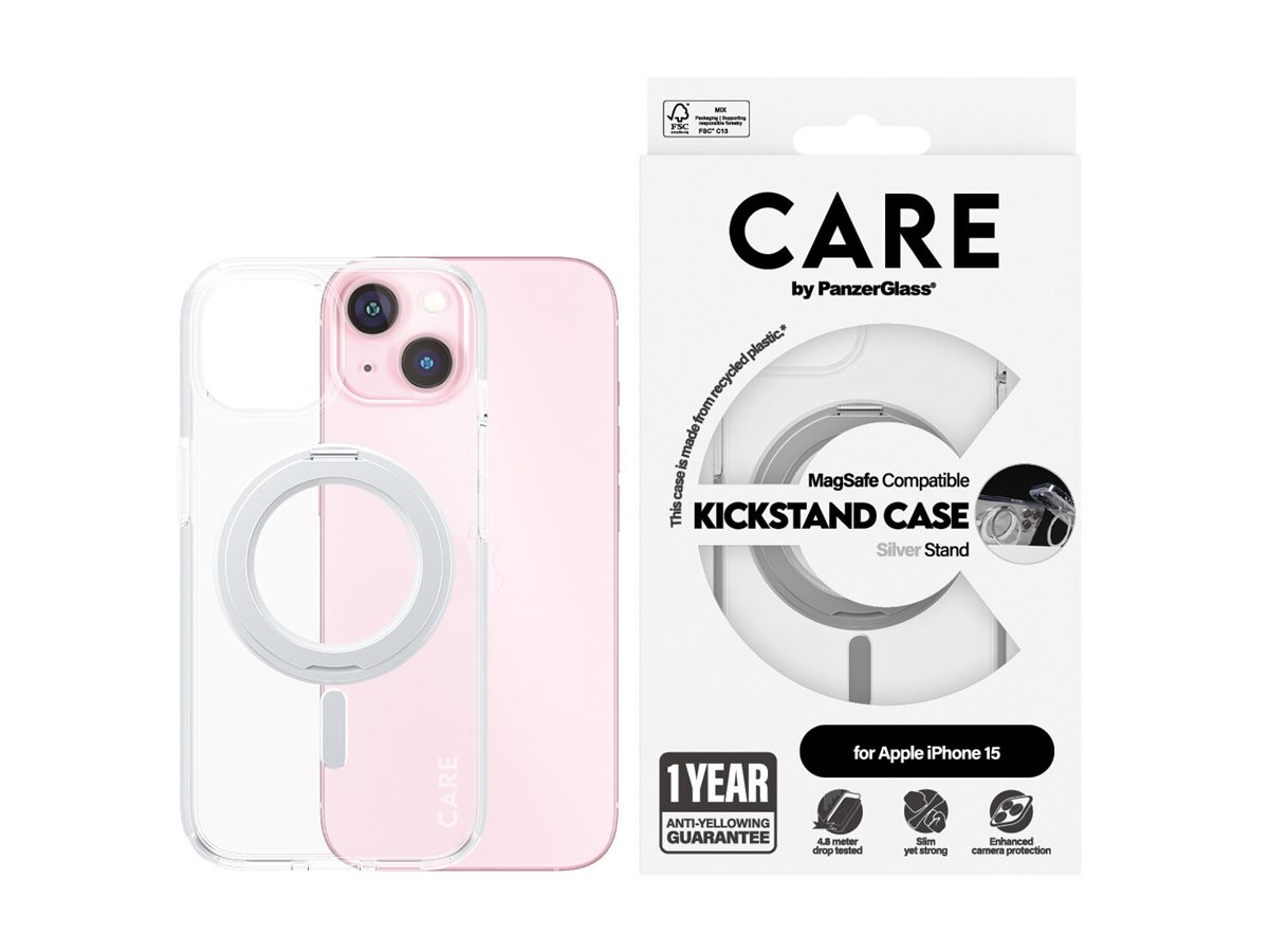 Få ultimativ beskyttelse af din mobil. Faldtestet på alle hjørner og vinkler fra 4,8 meters højde. Fremstillet af genanvendt plastik. Trådløs opladning og MagSafe-kompatibel. 1 års garanti mod gul misfarvning – uden forbehold og undtagelser. Det ultratynde og lette Kickstand cover er alt, hvad du drømmer om. Et af vores mest efterspurgte covere, der nu er tilgængeligt igen. Praktisk design med en ekstra feature til håndfri visning – både vertikalt og horisontalt. Gør det nemt for dig og dine børn at facetime, streame og se film – eller måske yogaundervisning. Håndfrit og hvor som helst. Giver dig desuden ekstra god beskyttelse af kameraet. DARE TO CARE Care er et internationalt livsstils- og techbrand, kendt for sit legende og ansvarlige design. Skabt af de bedste materialer og inspireret af de nyeste trends inden for mode, kunst og musik. Med CARE tager vi ansvar for mennesker og den verden, vi lever i. Vi understøtter bæredygtighed og dit personligt udtryk – og forlænger dine enheders holdbarhed. Opgrader din mobil til en stilsikker og godt beskyttet accessory. Vis verden, at du tager ansvar. Dare to care.