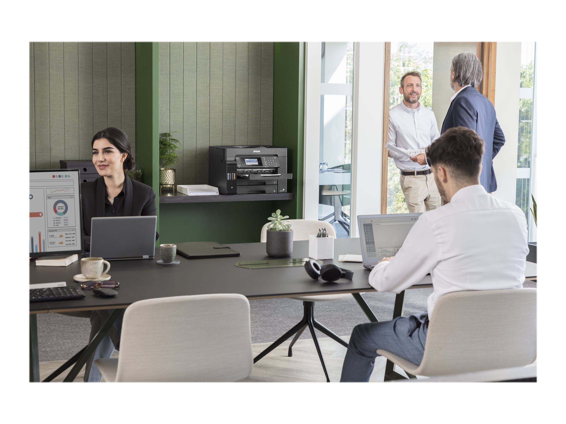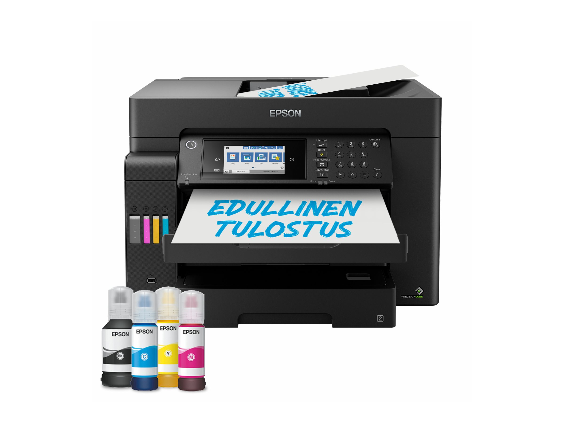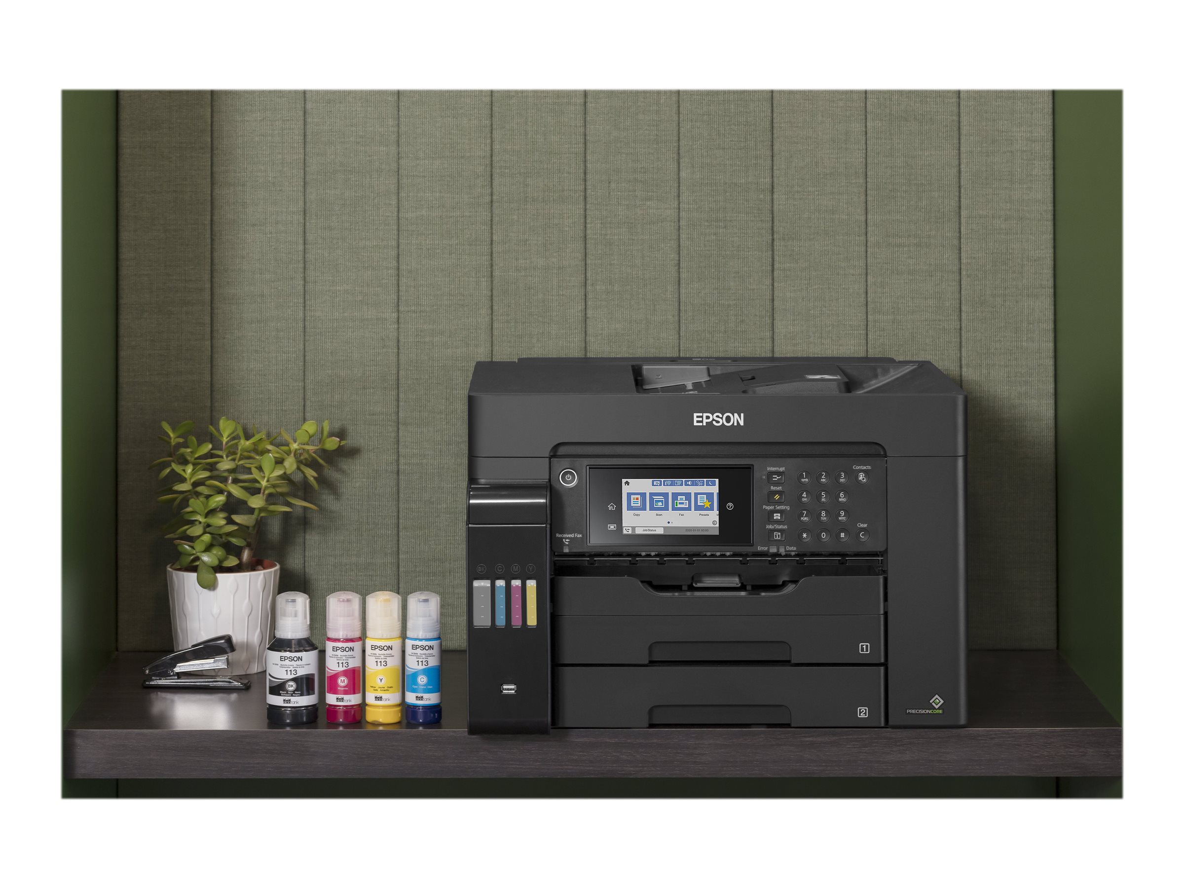 Denne funktionsrige EcoTank gør det let at udføre A3+-opgaver, samtidig med at den tilbyder en lav pris pr. side. A3+-opgaver kan færdiggøres hurtigt takket være høje udskrivnings- og scanningshastigheder, to 250-arks papirbakker, en arkføder på bagsiden til 50 ark og en automatisk A3-arkføder til 50 ark. Udskriv, som du vil, med mobil udskrivning, Ethernet og en LCD-berøringsskærm på 10,9 cm med funktionstaster.
