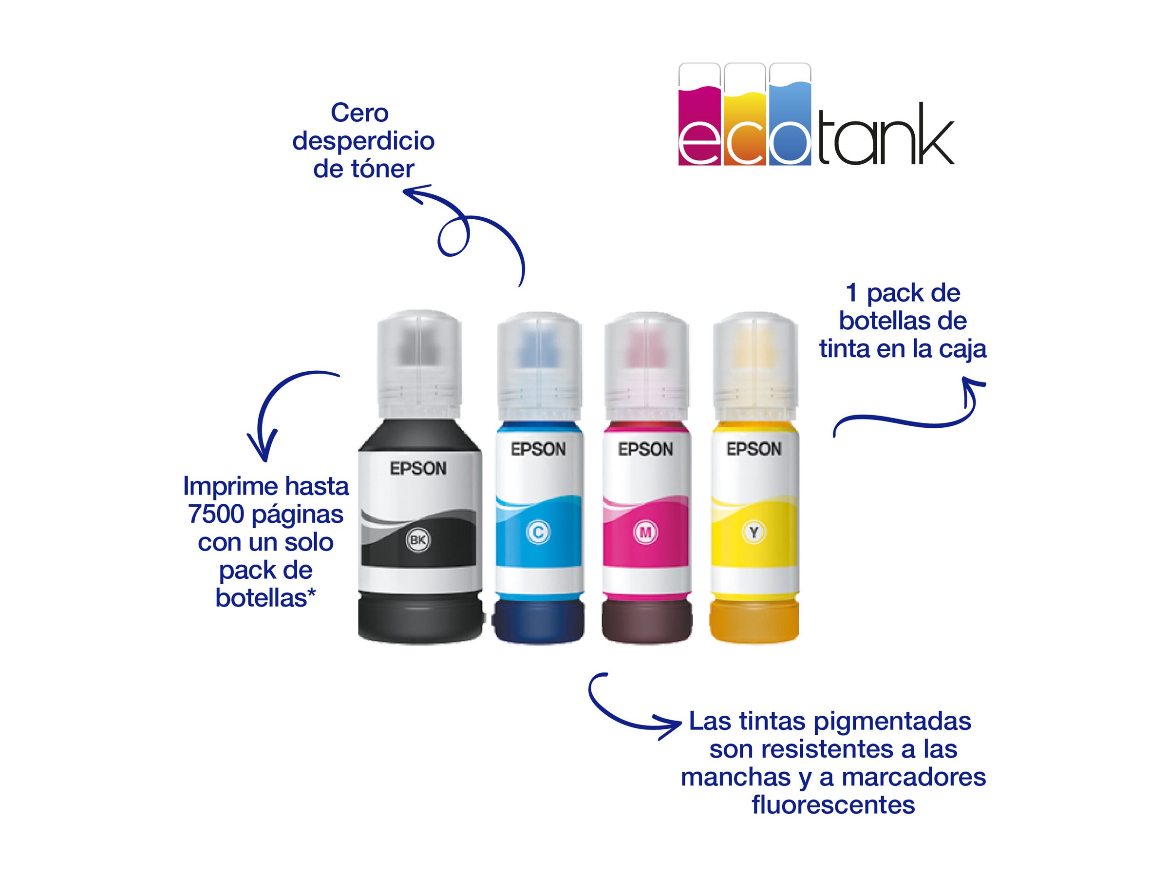 | Consumables Included | 1 x ink bottle (black) - up to 4500 pages | 1 x ink bottle (cyan) - up to 2800 pages | 1 x ink bottle (magenta) - up to 2800 pages | 1 x ink bottle (yellow) - up to 2800 pages |