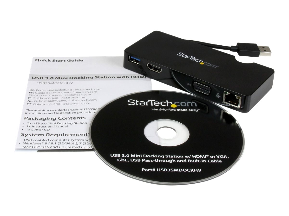 StarTech.com USB 3.0 to HDMI or VGA Adapter Dock - USB 3.0 Mini Docking Station w/ USB, GbE Ports - Portable Universal Laptop Travel Hub (USB3SMDOCKHV) - Dockingstation - USB - HDMI - 1GbE - for P/N: ARMPIVOT, ARMPIVOTE, ARMPIVSTND, ARMSLIM, ARMUNONB