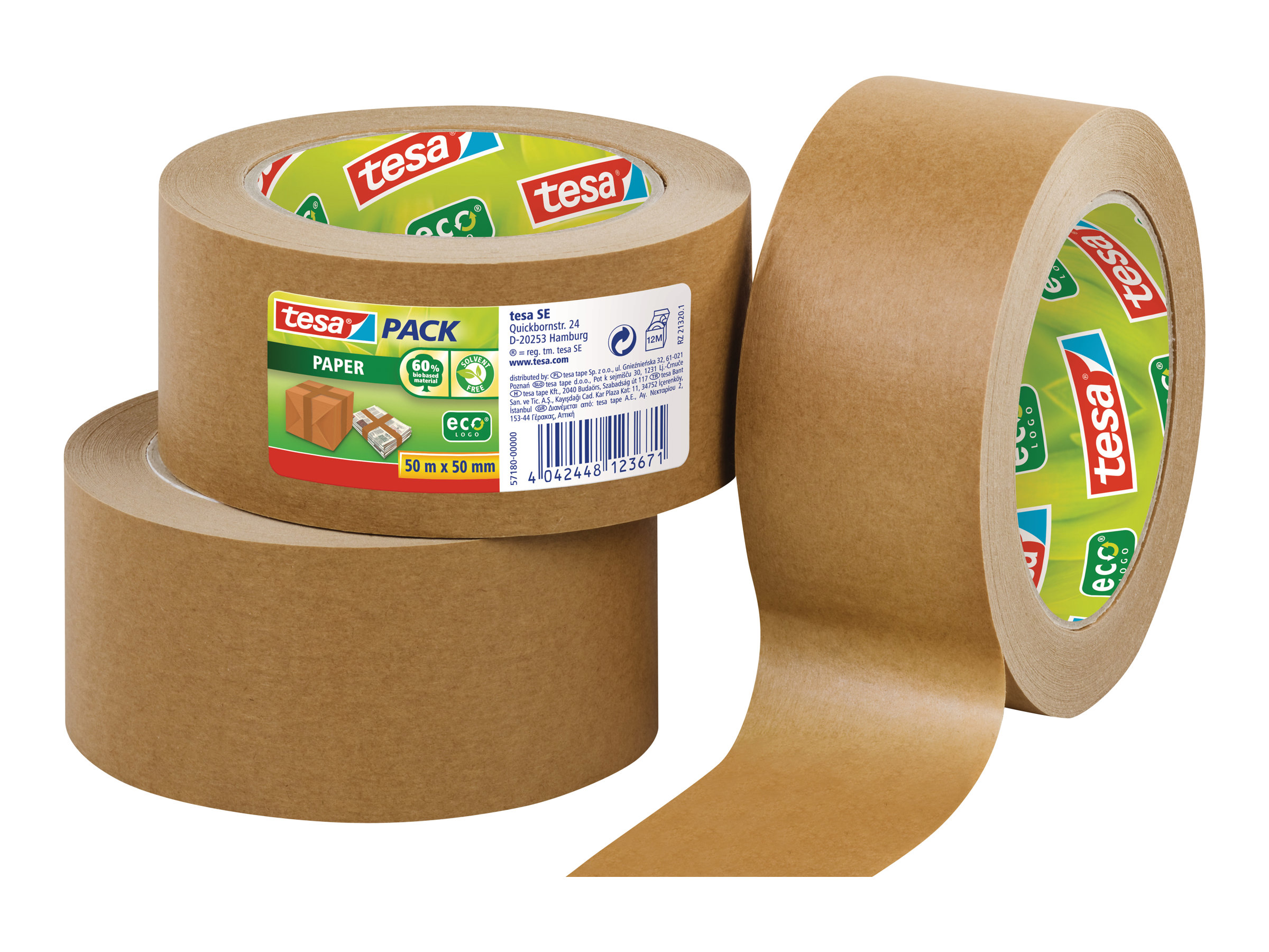 | Features | Easy tearing, solvent-free adhesive, core made of 100% recycled cardboard, 60% bio-based |