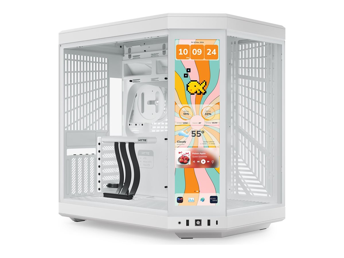 HYTE Y70 Touch-systemkabinettet omdefinerer æstetikken i stationære computere med sit 3-delte panoramaglas og dobbelte kammerlayout, der giver et fantastisk udsyn over de interne komponenter og samtidig optimerer luftstrømmen til køling.