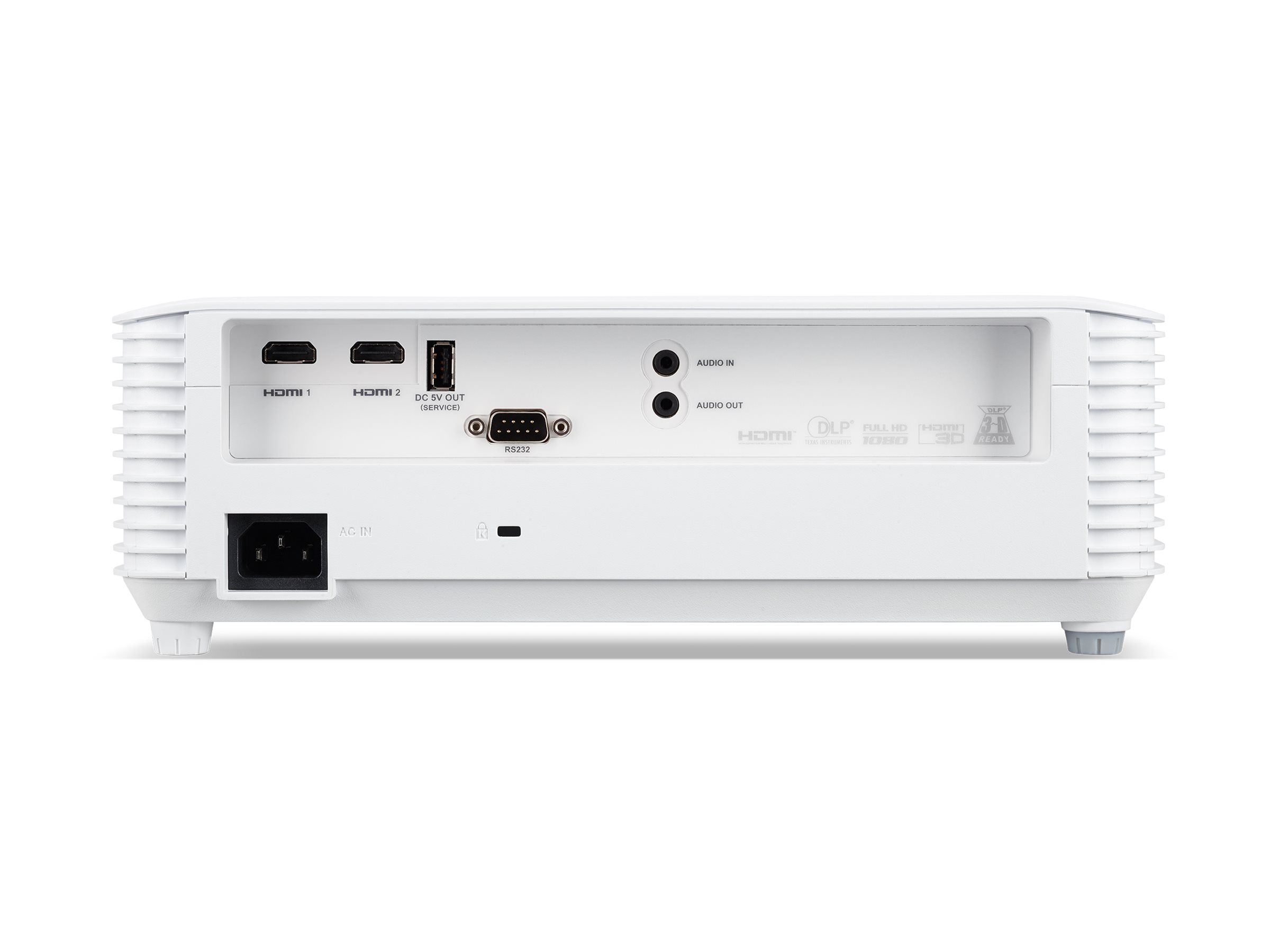 Projektoren har flere grænseflader, herunder HDMI, USB og audio line-in og line-out, hvilket sikrer nem tilslutning til forskellige enheder.