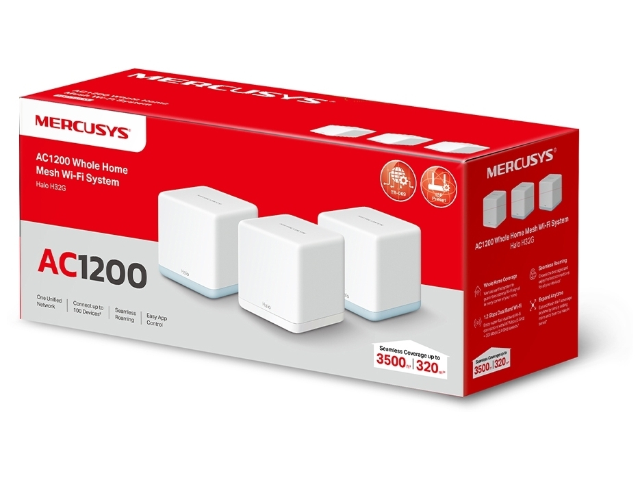 Mercusys Halo H32G V1 - Wi-Fi-system - (3 routere) - op til 320 m2 - mesh 1GbE - Wi-Fi 5 - Dual Band