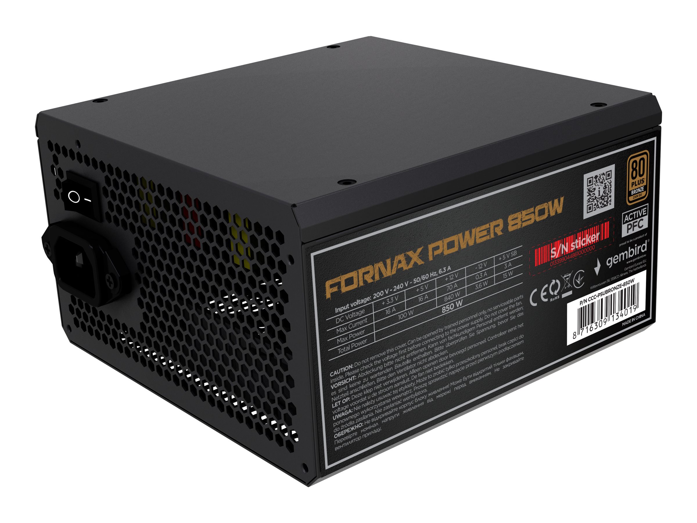 | Produktbeskrivelse | Gembird CCC-PSUBRONZE-850W - strømforsyning - 850 Watt |