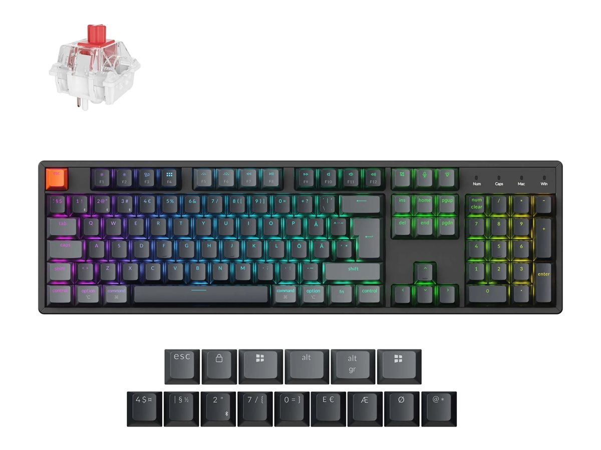 Keychron K10 - Version 2 - tastatur - ISO-layout, QMK, mekanisk - 100% - full size - bagbelyst - trådløs - USB-C, Bluetooth 5.2 - QWERTY - Nordisk - tastkontakt: Keychron Super Red (Hot-swappable)