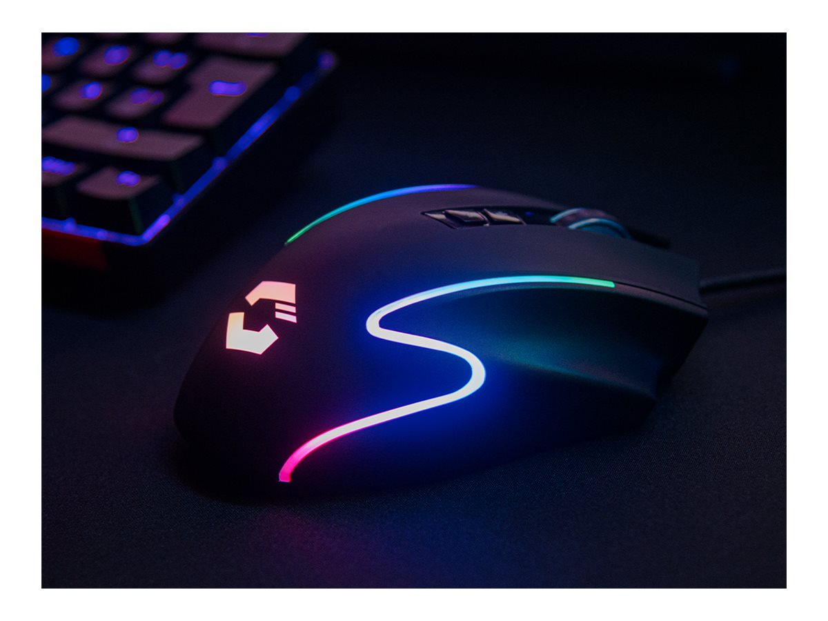 | Egenskaber | Hurtigskudsknap, DPI-kontaktknap, konfigurerbar RGB-belysning, macro-programmering, scrollhjul, flettet kabel, gummificeret overflade |