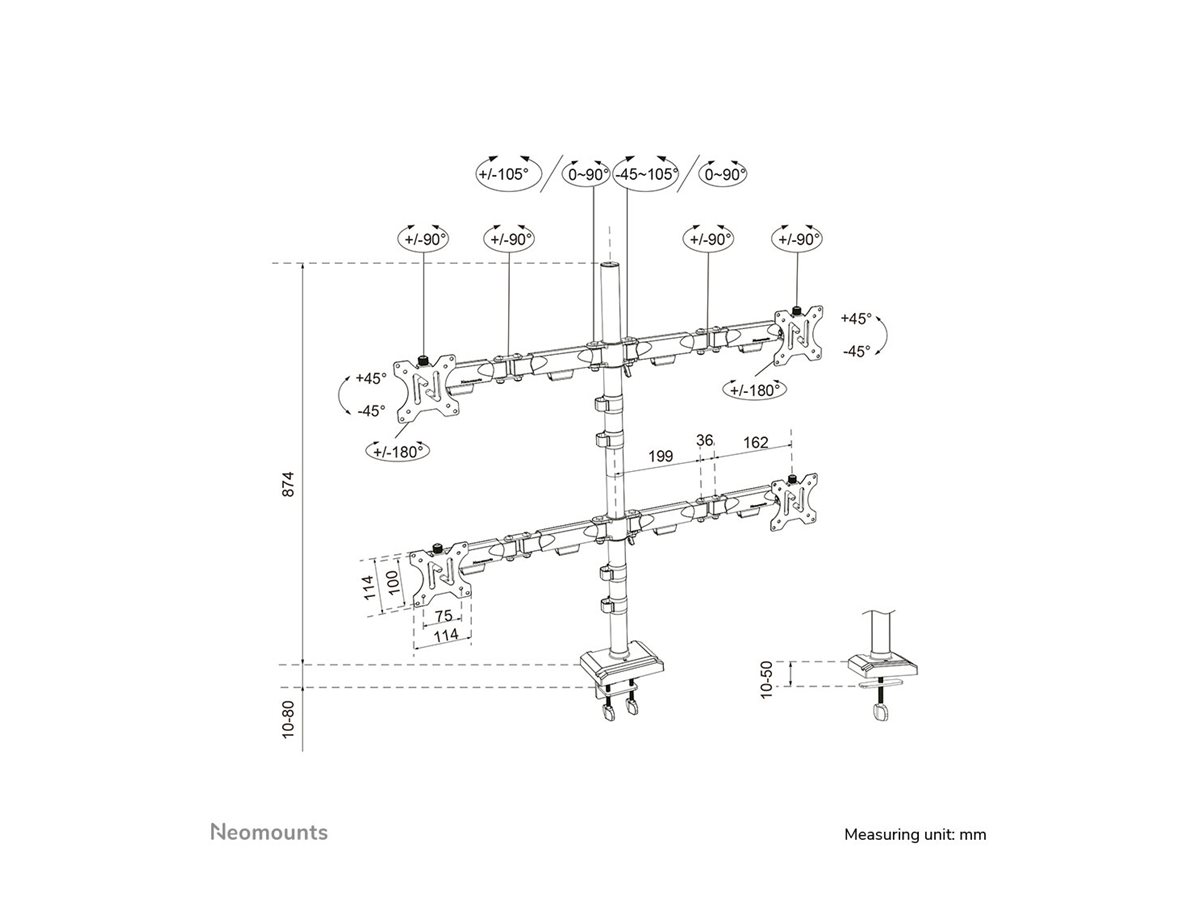 | Produktbeskrivelse | Neomounts monteringssæt - fuld bevægelse - for 4 skærme - sort |