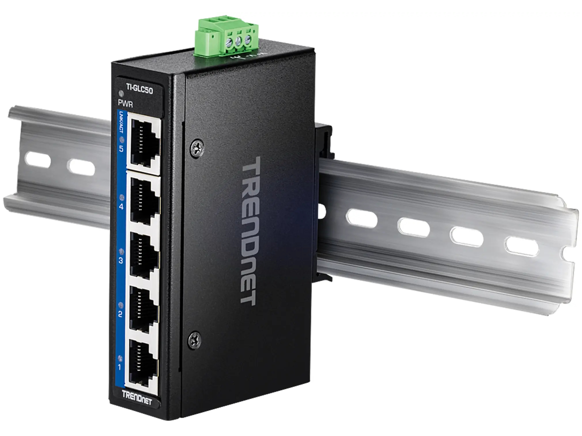 TRENDnet TI-GLC50 - Switch - ikke administreret - 5 x 10/100/1000 - DIN monterbar på skinne, væg-monterbar - DC strøm - TAA-kompatibel - Uden Strømforsyning