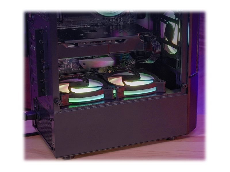 | Kølesystem | Front: 120 mm ventilator x 2 / RGB-blæser, 3 x 120 mm eller 2 x 140 mm blæser understøttet | Top: 120 mm blæserstativ x 2 | Bagside: 120 mm ventilator x 1 / RGB-blæser | PSU-bås: 120 mm blæserstativ x 2 |