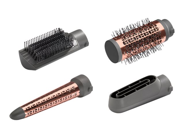 En kraftig 1000 W-hårstyler og -tørrer med en række tilbehørsdele til føntørring, udglatning, formning og krølning.