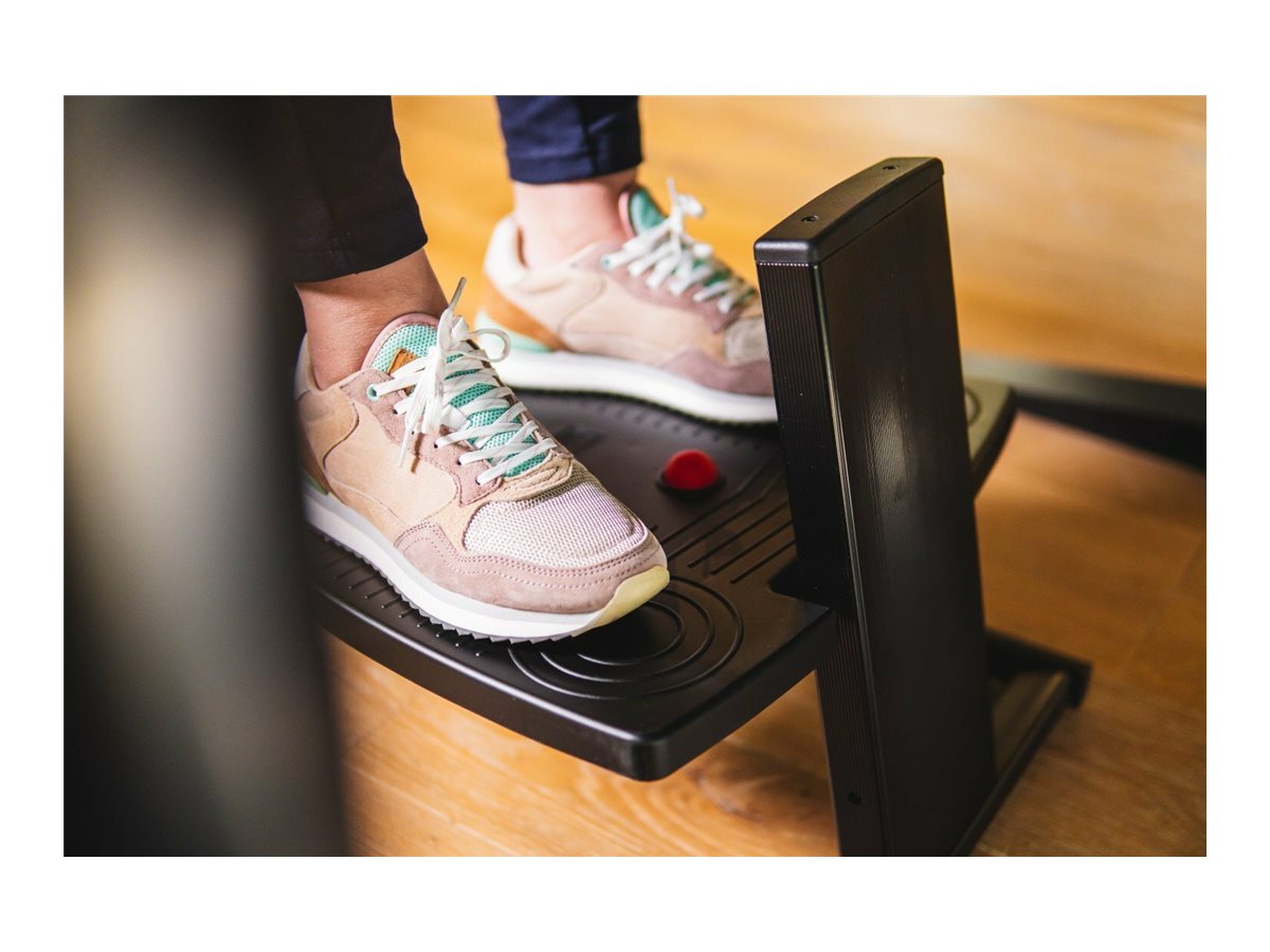 Footform Dual-fodstøtten fra Bakker Elkhuizen har en justerbar højdeindstilling, der sikrer en behagelig og ergonomisk arbejdsstilling for brugere af alle højder. Dens design fremmer bedre siddestillinger og reducerer belastningen på ryg og ben, når man sidder ned i længere tid.