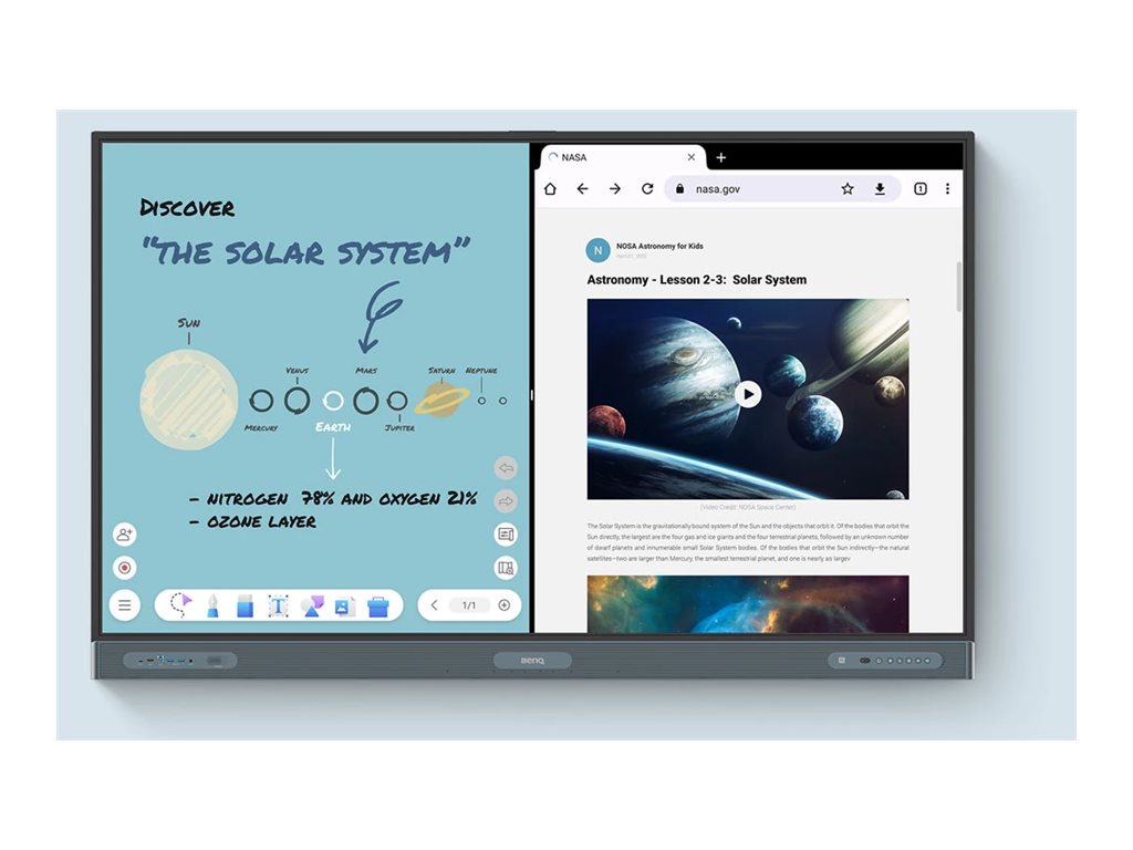 | Egenskaber | Infrarød touch teknologi, EZWrite Software, Flimrefri teknologi, 10-bit support, Account Management System (AMS), Device Management Solution (DMS), indbygget luftionisator, BenQ ClassroomCare-løsninger |