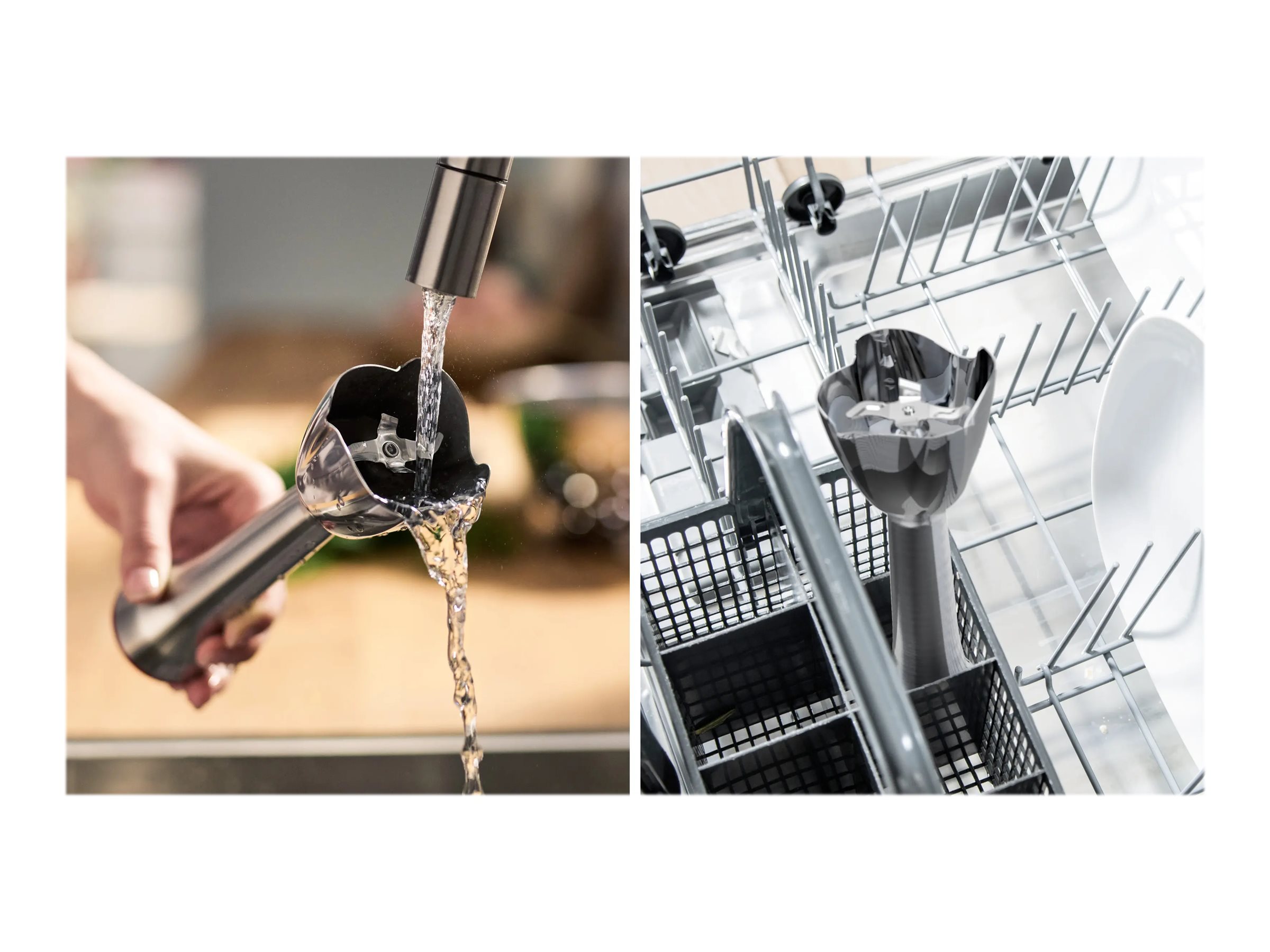 Inkluderede klinger og påsættelser Hånd blender fod i rustfrit stål, 4 QuattroBlade-knive