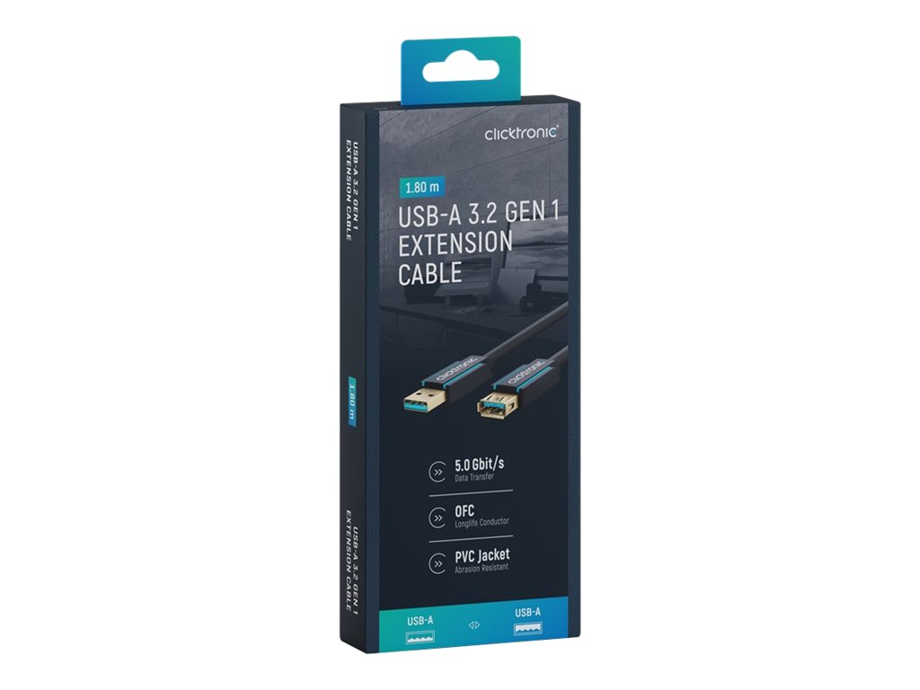 | Produktbeskrivelse | ClickTronic - USB forlængerkabel - USB Type A til USB Type A - 1.8 m |