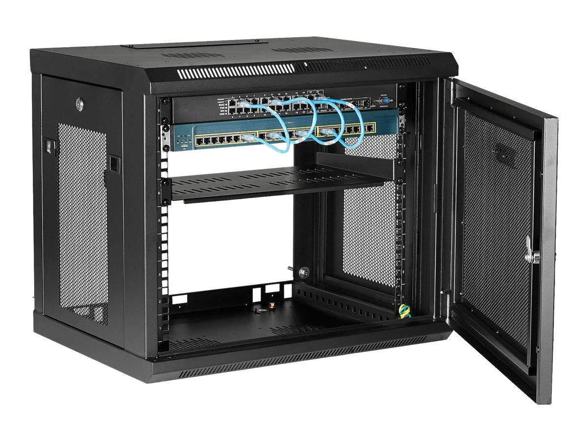 Startech 2 Post 9U 19" Wall Mount Network Cabinet, Adjustable Depth 6-15" Locking IT Switch Depth Enclosure, Vented Computer/Electronics Equipment Data Rack w/ Shelf + Hook & Loop Tape - 19 Inch Wall Cabinet (RK9WALM) - Stativindelukkekabinet - vægmonterbar - sort - 9U
