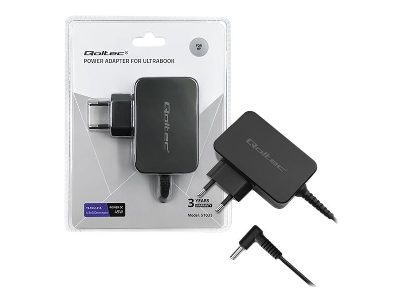 | Produktbeskrivelse | Qoltec - strømforsyningsadapter - 19,5 V, 2,31 A, 4,5 * 3,0 + pin - 45 Watt |