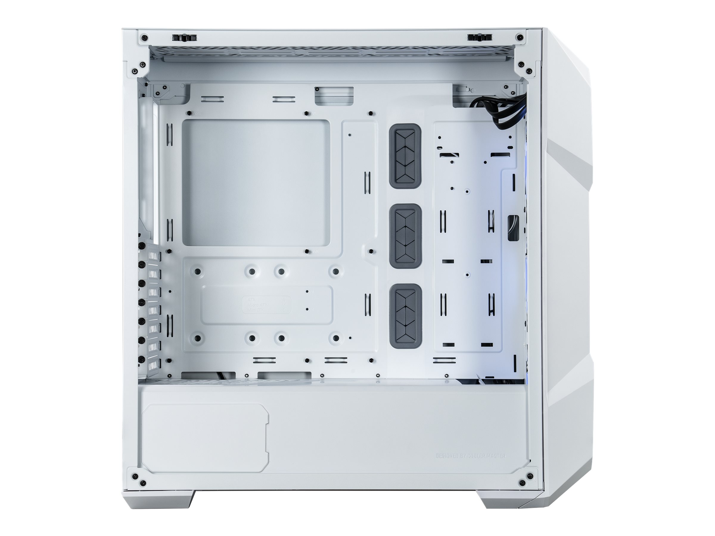 | Kølesystem | Front: 120 mm ventilator x 3 / ARGB-blæser | Bagside: blæserstativ / 1 x 120 mm blæser understøttet | Top: blæserstativ / 3 x 120 mm eller 2 x 140 mm blæser understøttet |
