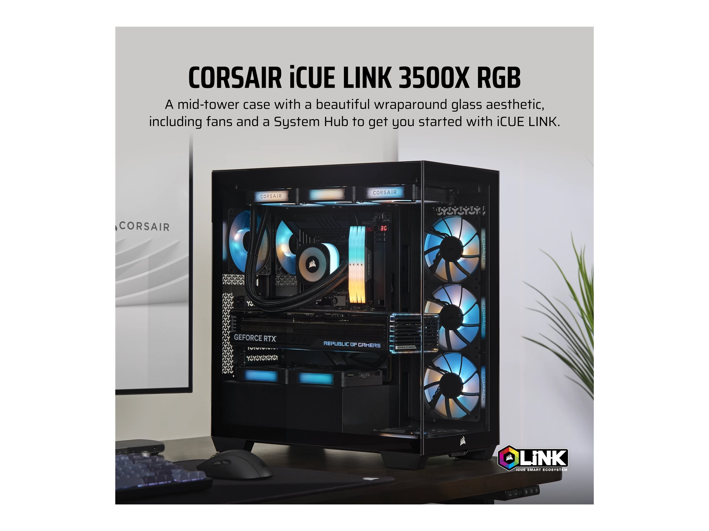 | Produktbeskrivelse | CORSAIR iCUE LINK 3500X RGB - mid tower - udvidet ATX |