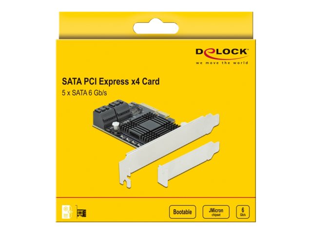 | Produktbeskrivelse | Delock 5 port SATA PCI Express x4 Card - Low Profile Form Factor - lagringskontrol - SATA 6Gb/s - PCIe 3.0 x4 |