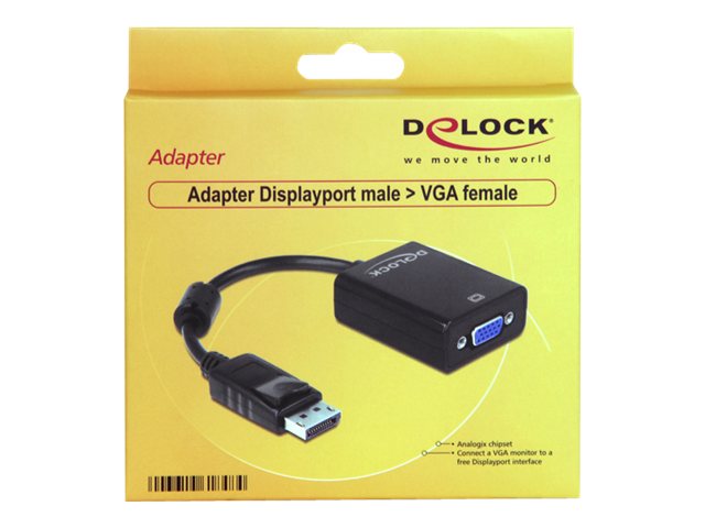 | Produktbeskrivelse | Delock Adapter Displayport male > VGA 15 pin female - VGA-adapter - 12.5 cm |
