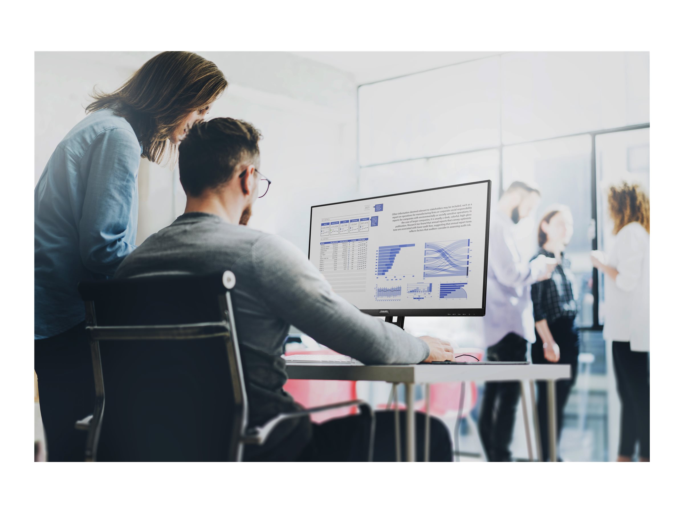 Vores S-line-skærm sikrer effektivitet på professionelt niveau. Funktioner såsom flimmerfri tilstand og LowBlue-tilstand gør arbejdet behageligt at se på og øger din produktivitet.