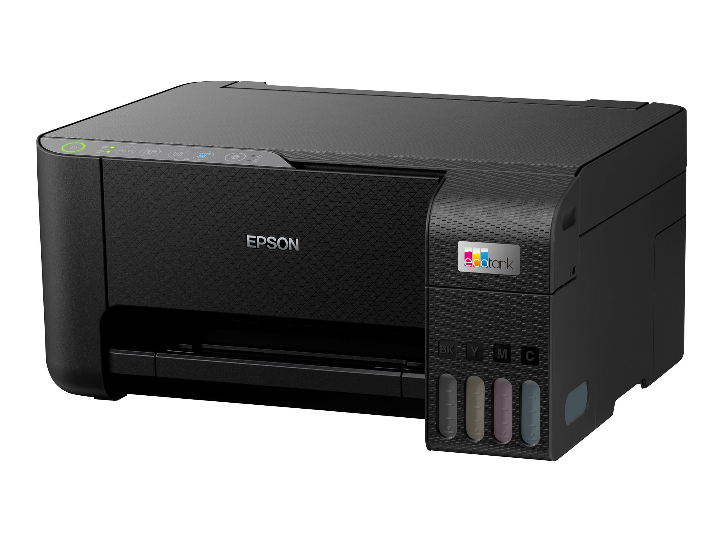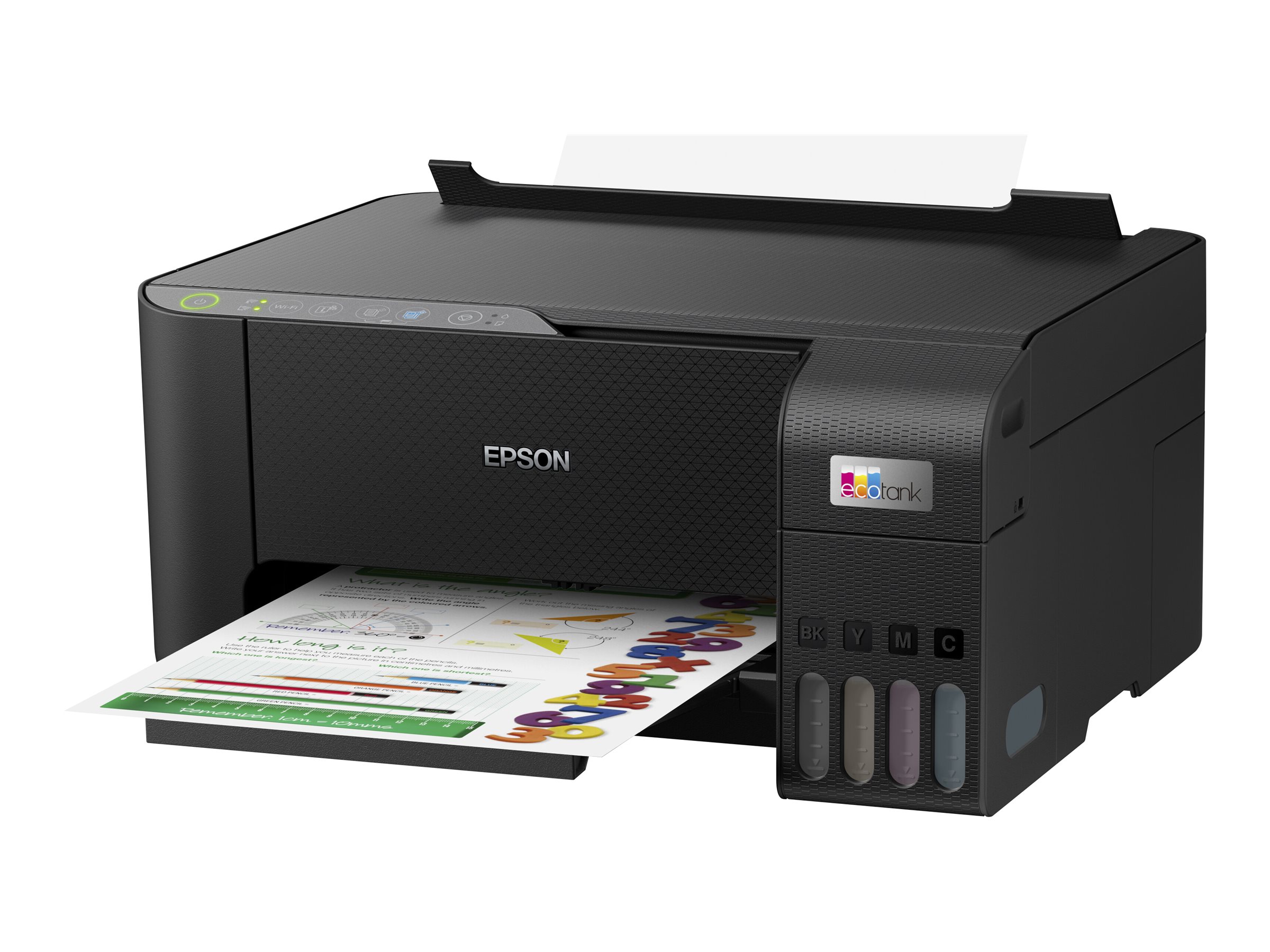 EcoTank giver problemfri udskrivning til hjemmet. Blækbeholderne med ultrahøj kapacitet giver mulighed for genopfyldninger uden spild, og nøglelåsflaskerne er designet, så kun de korrekte farver kan isættes. Frontdisplayet gør det nemt at se, hvornår det er tid til en genopfyldning.