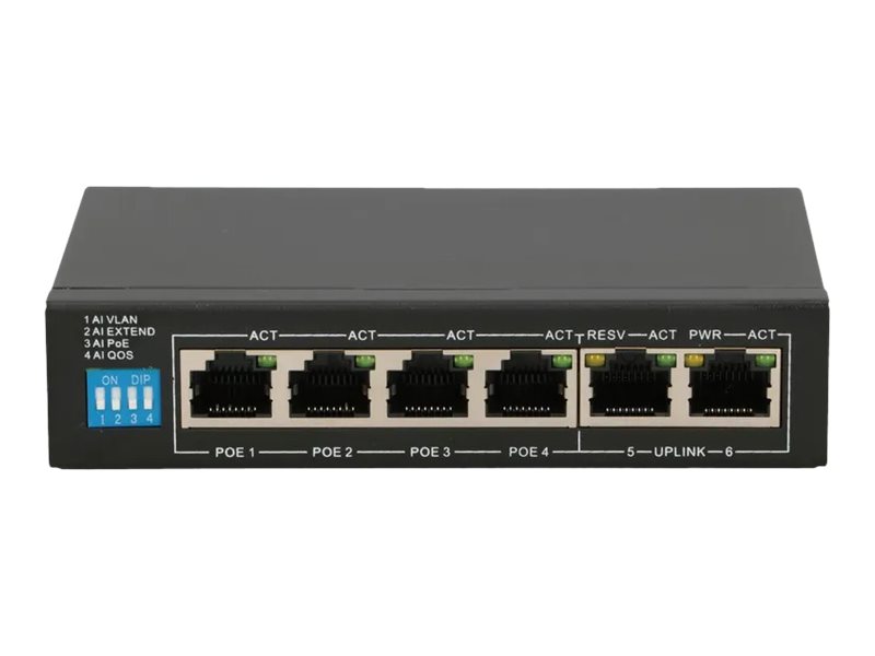 | Interface | 4 x 100Base-TX RJ-45 PoE+ - 30 W | 2 x 100Base-TX RJ-45 uplink |