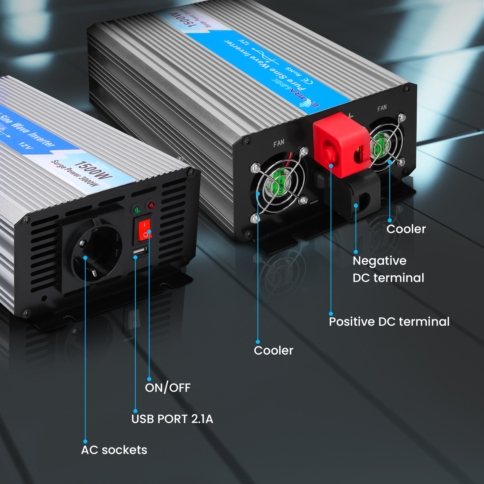EXTRALINK VOLTAGE CONVERTER 12V - 230V, 1500W, PUR