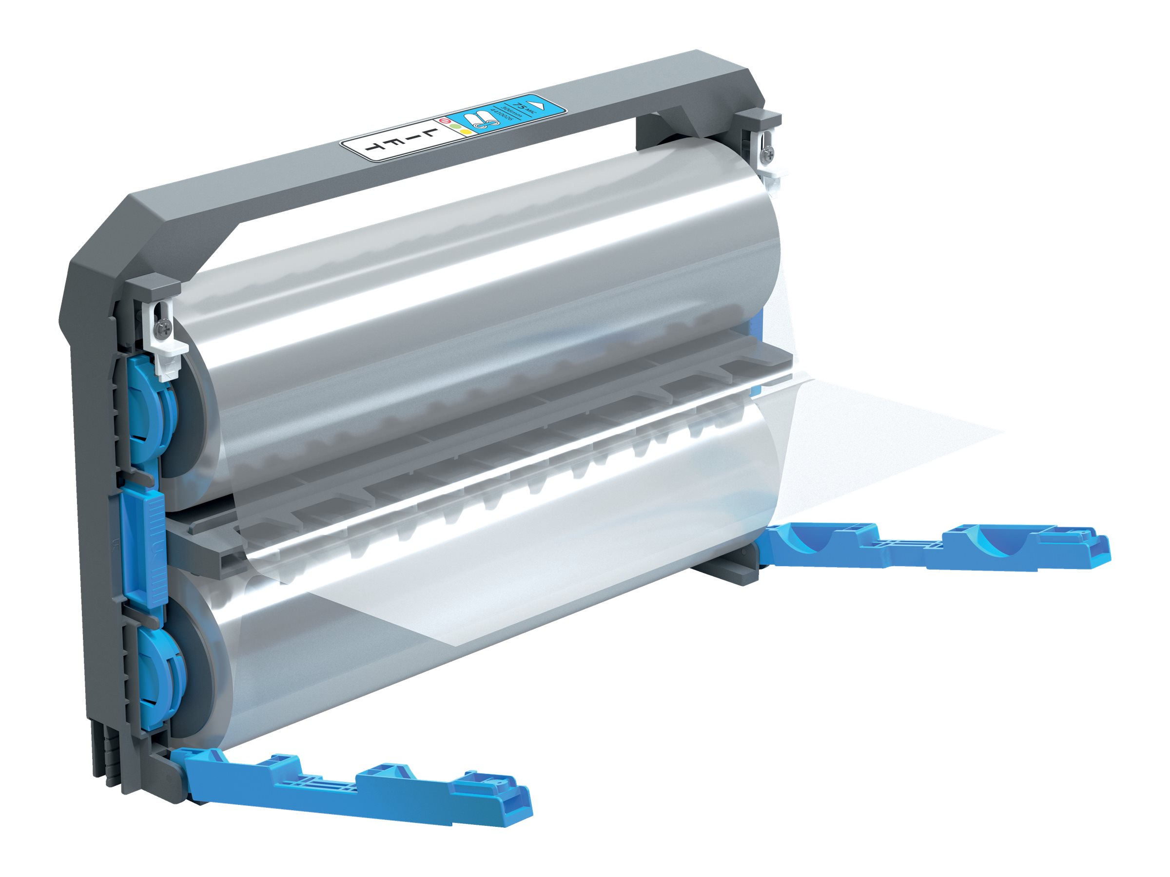 Denne unikke og genopfyldelige 75 mikron lamineringsfilmkassette bruges med GBC Foton 30 automatiske lamineringsmaskine. Kassetten leveres med en 75 mikron lamineringsrulle, der laminerer op til 250 x A4-ark. For isætning: Fjern tom kassette, åbn kassettehåndtagene, sæt en ny lamineringsrulle i og luk håndtagene. Hele kassetten sættes let i lamineringsmaskinen. Erstatnings 75 mikron lamineringsfilm har varenr. 4410026.