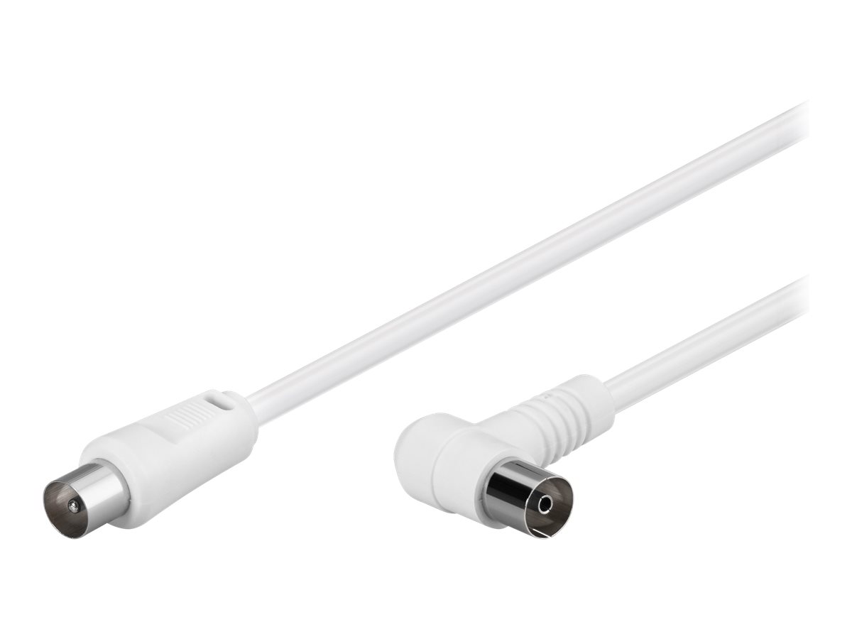 goobay - Antennekabel - IEC-forbindelse stik vinklet til IEC-forbindelse modtager lige - 1.5 m - dobbelt afskærmet koaksial - 80 dB - hvid