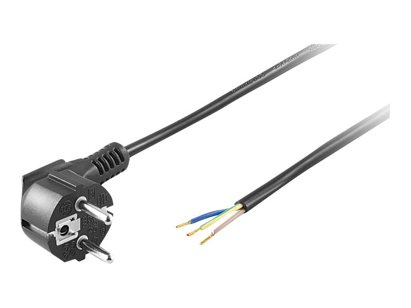 goobay - Strømkabel - power CEE 7/7 (han) til uisoleret ledning - AC 250 V - 10 A - 1.5 m - vinklet - sort