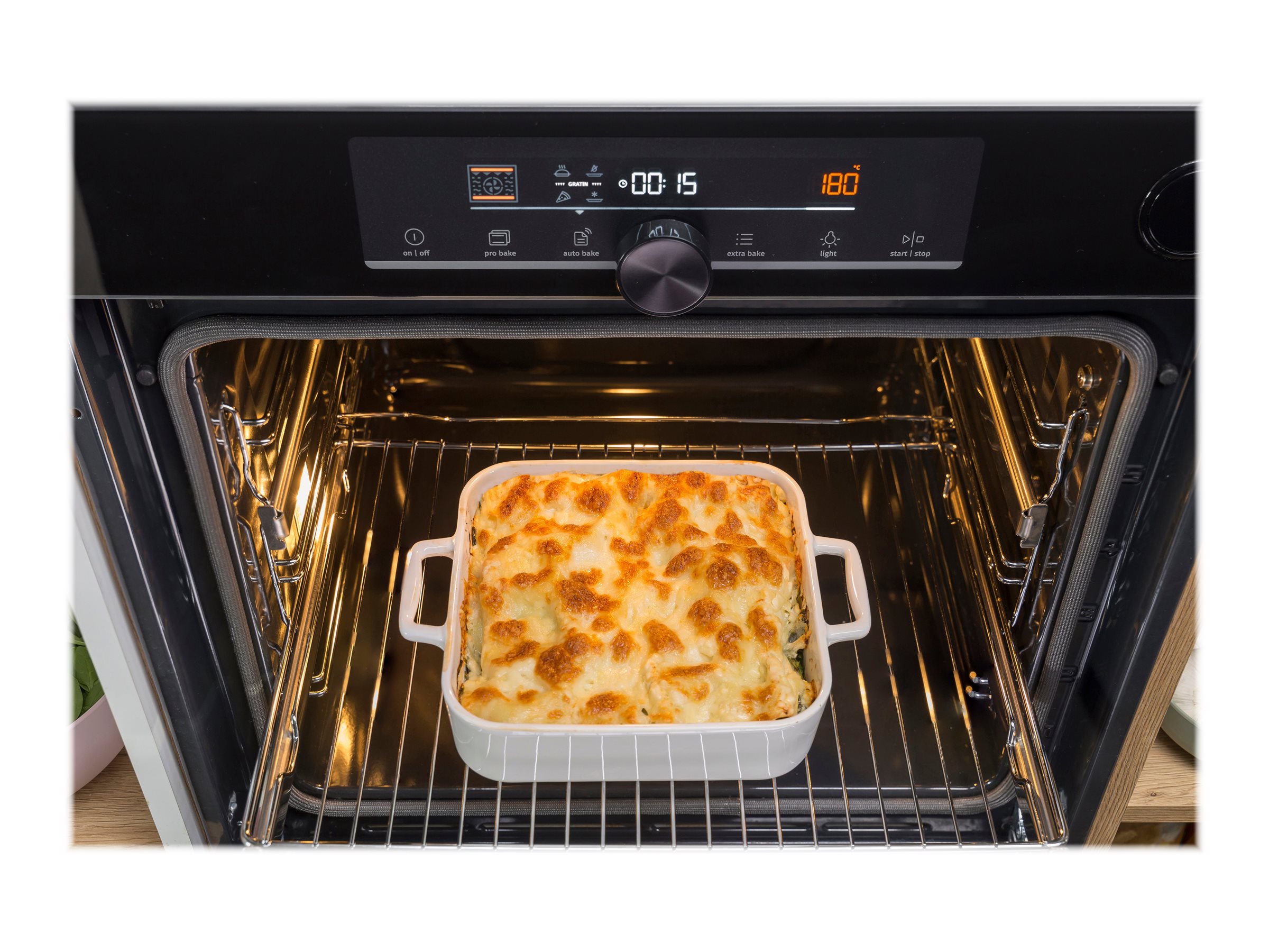 Med indstillingen Gratin kan du få den perfekte gyldenbrune skorpe på lasagner, kød, kartoffelgratiner og andre gratinerede retter.