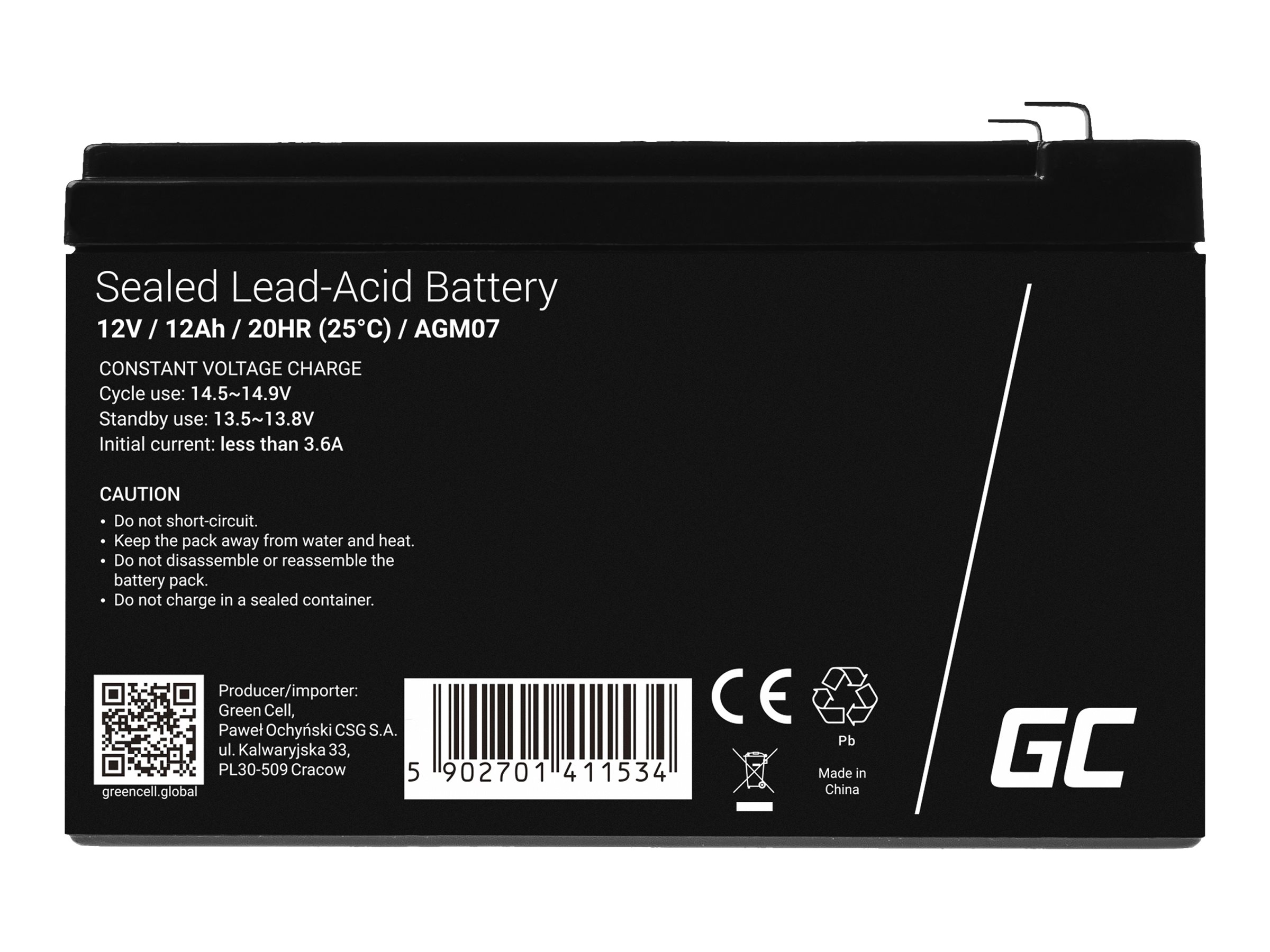 | Produktbeskrivelse | Green Cell - UPS-batteri - Blysyre - 12 Ah |