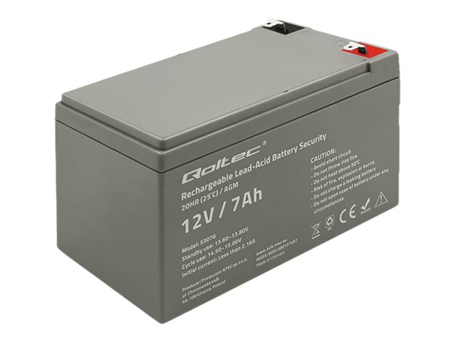 | Produktbeskrivelse | Qoltec - UPS-batteri - AGM-batteri, maks. 105 A, sikkerhed - Blysyre - 7 Ah |