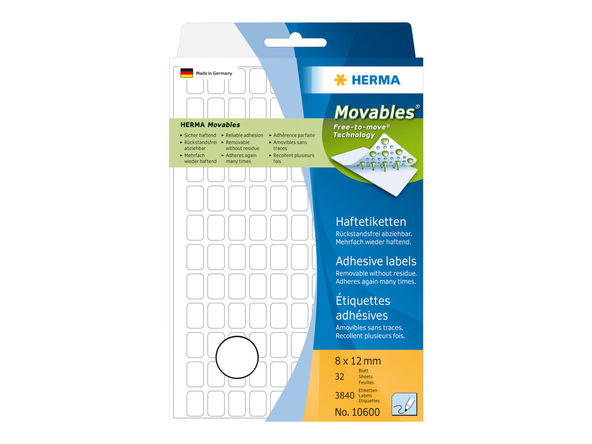 | Produktbeskrivelse | HERMA - etiketter - 2880 etikette(r) - 8 x 12 mm |