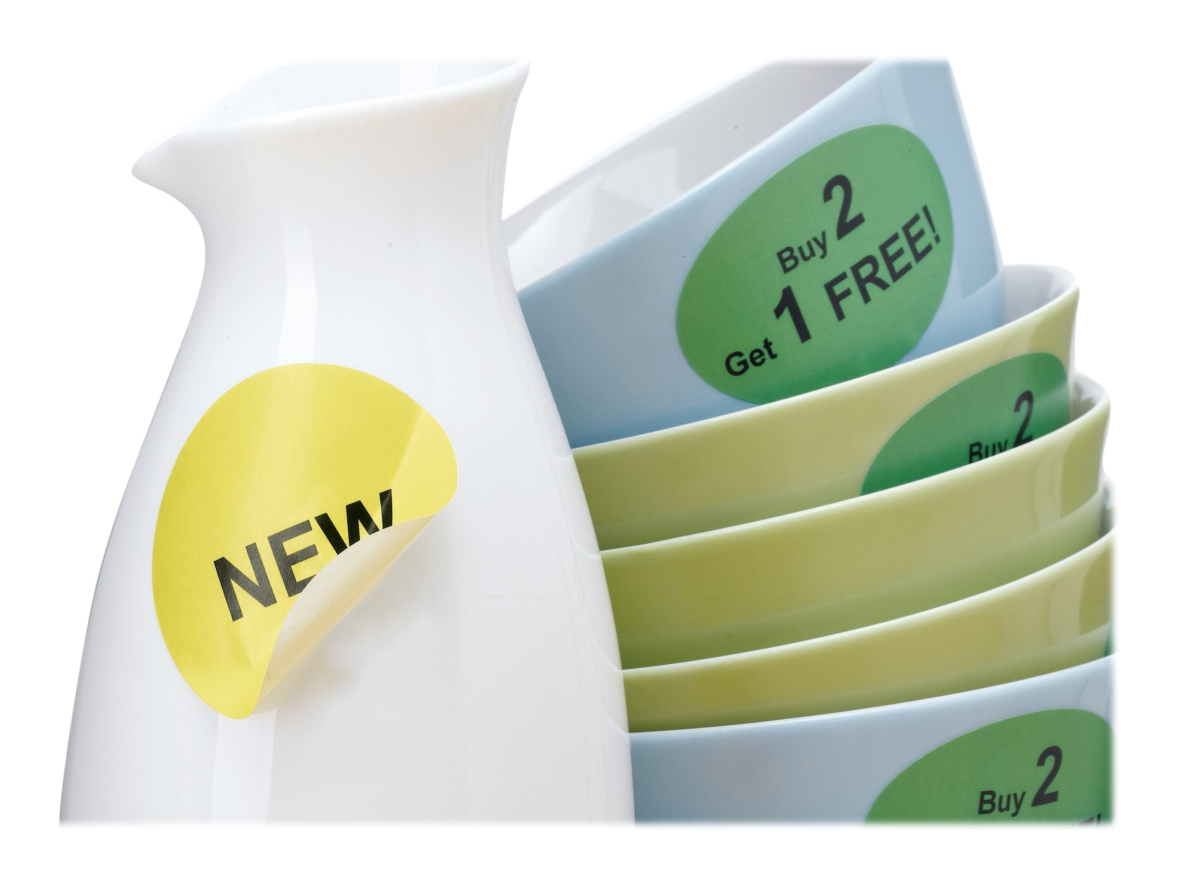 Runde etiketter på A4-ark med Movables-Technology: kan trækkes af og sættes på igen