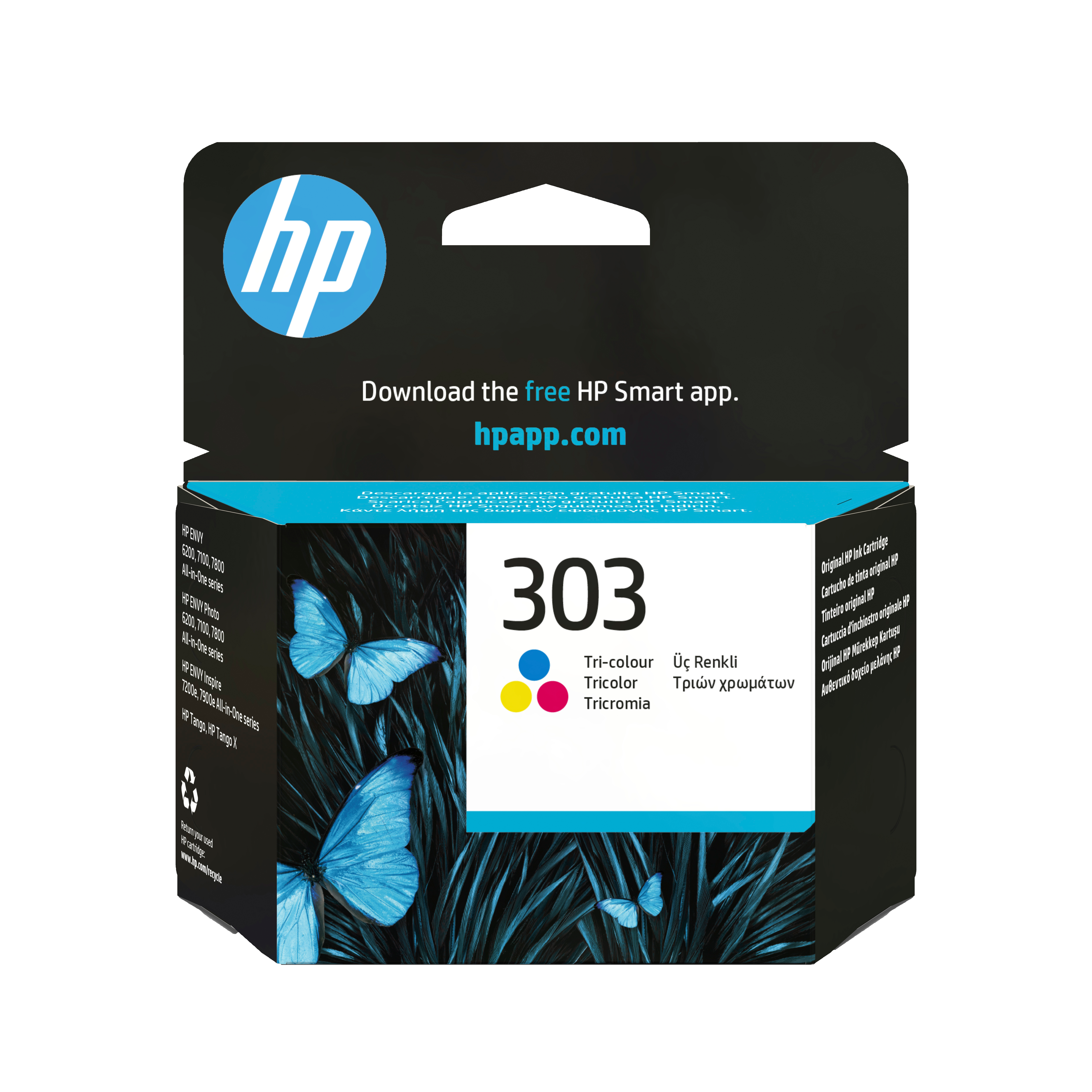 | Kapabilitet | HP 303-blækpatroner fungerer sammen med: HP Envy 6200, 7134, 7220e, 7221e, 7224e, 7800, 7900e HP Tango X |