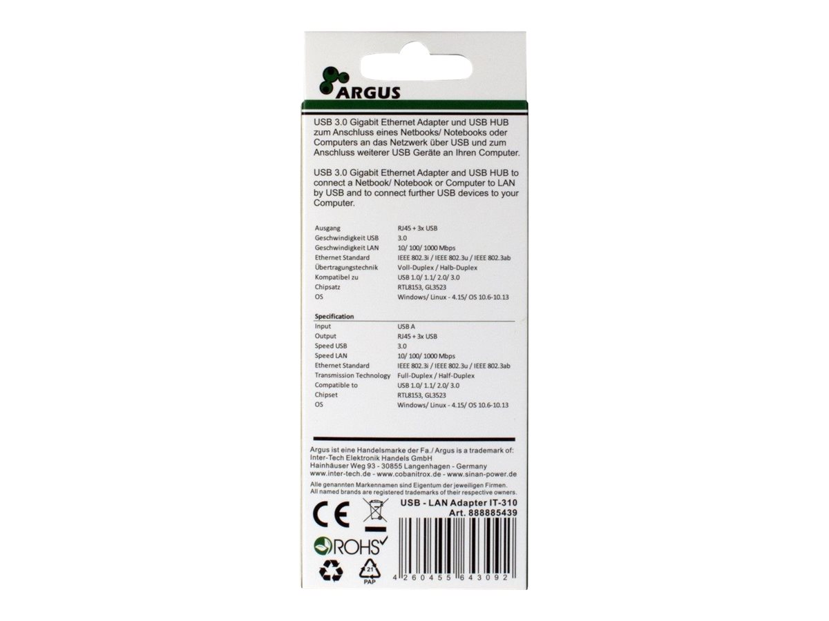Argus IT-310 - Hub - 3 x SuperSpeed USB 3.0 + 1 x 10/100/1000 - desktop