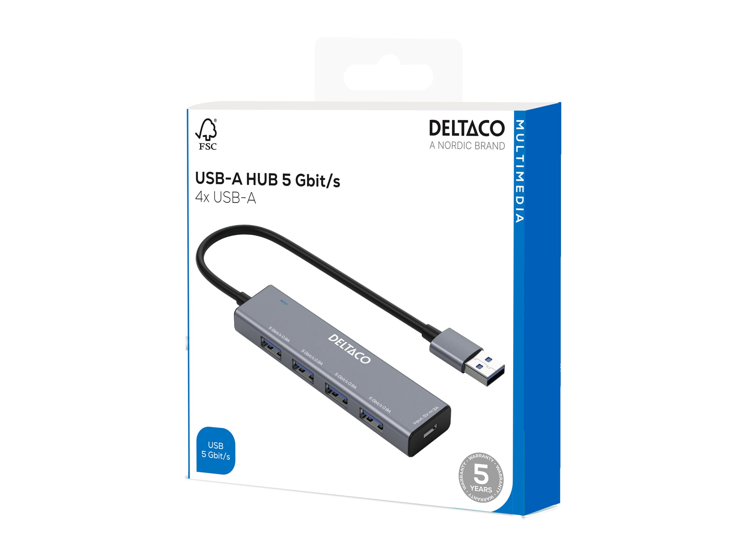 | Produktbeskrivelse | DELTACO - hub - 5 Gbps, USB-A - 4 porte |