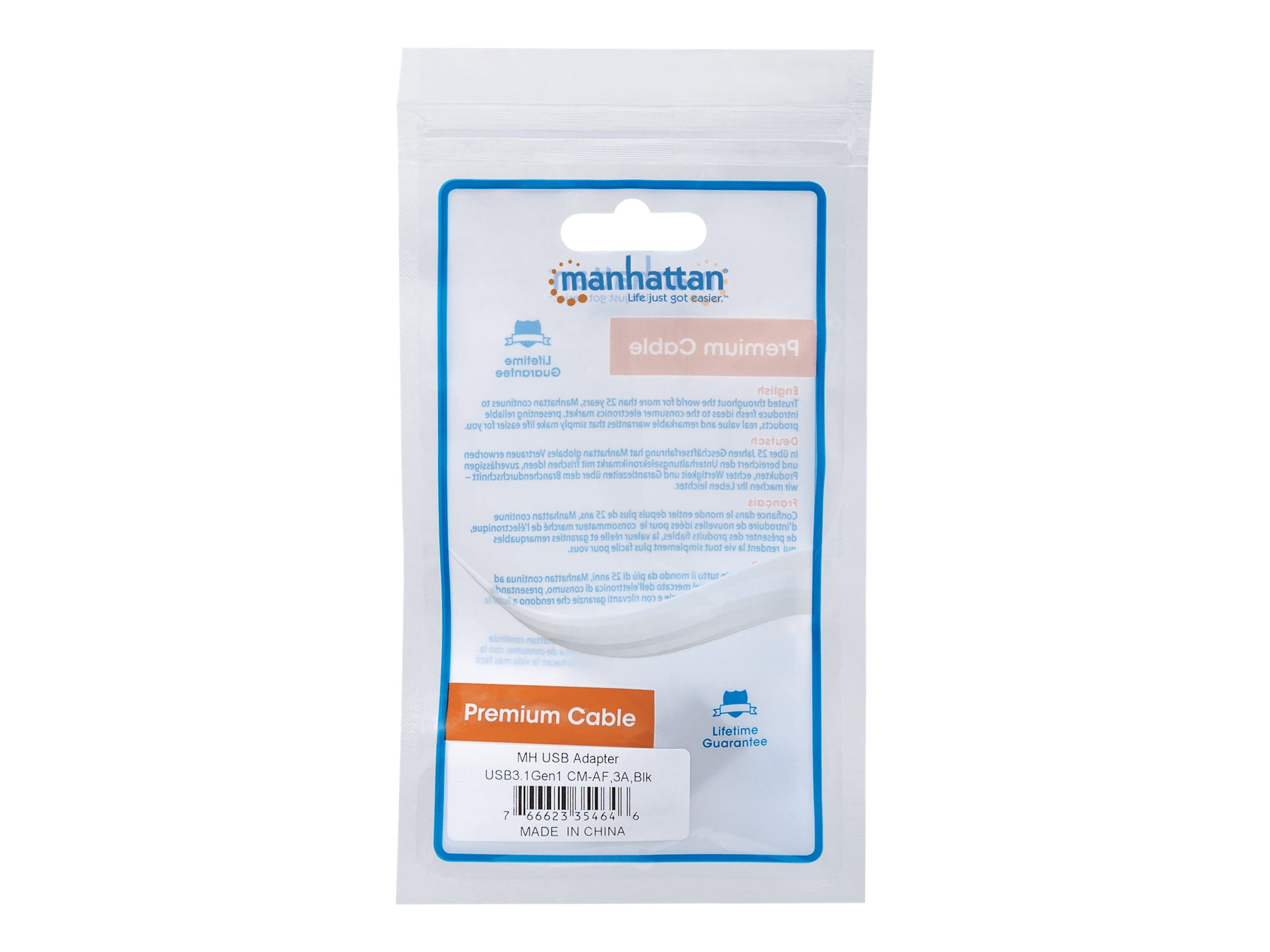 | Produktbeskrivelse | Manhattan USB-C to USB-A Adapter, Male to Female, 5 Gbps (USB 3.2 Gen1 aka USB 3.0), SuperSpeed USB, Black, Lifetime Warranty, Polybag - USB-C adapter - USB-C til USB Type A |